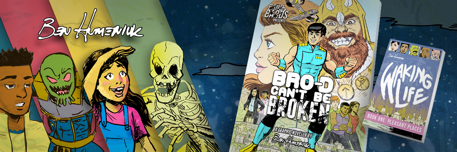 Ben Humeniuk is a comic creator and educator whose works include the YA graphic novella BRO-D CAN'T BE BROKEN, the Middle Grade STEM-oriented Magnificent Makers series, and the MG fantasy series Waking Life. He writes, draws, colors, and letters his own work, seeking to create stories that entertain while inspiring empathy and understanding, and he lives in the Houston, TX area with his wife and three children.
