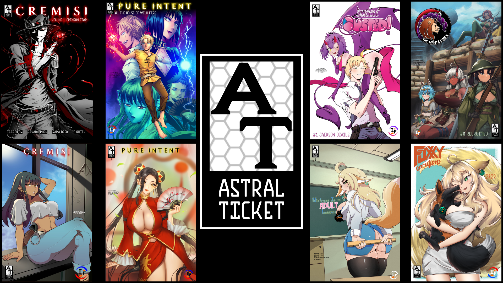Our comics range from hard-hitting tales of alcoholism and PTSD to sexy waifu romps around the hot springs. Praised by both fans and critics for comics with abundant, yet tasteful, fanservice coupled with meaningful and provocative stories, we’re here to take you on an adventure to new universes. When you fly Astral Ticket Comics, you fly first class!